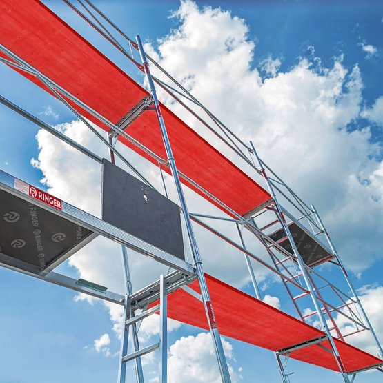 RINGER präsentiert im Bereich Fassadengerüste eine neue, innovativen „All-in-one“-Verstrebung für das Doppelgeländer-Gerüst – 20 % leichter und noch einfacher in der Handhabung.