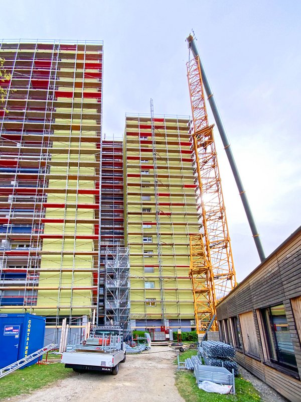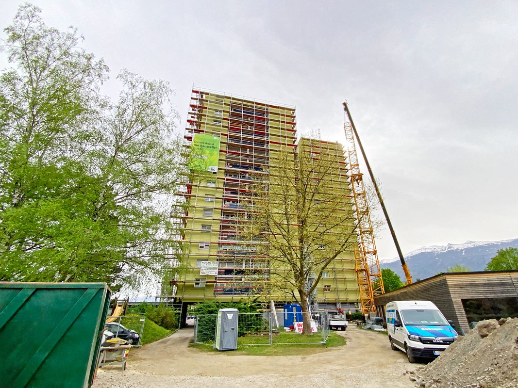 In der Schützenstraße in Innsbruck wurde die umfassende Sanierung eines 42 m hohen Wohnhauses erfolgreich abgeschlossen. Eine der größten Herausforderungen des Projekts war es, den Bewohnern während der gesamten Bauzeit einen sicheren und einfachen Zugang zu ihren Wohnungen zu ermöglichen.