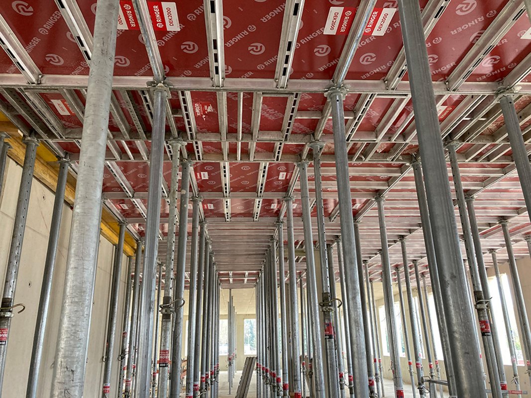 Bauleiter Lukas Hofer, von der Fa. Wiesinger Bau GmbH, ist sehr zufrieden mit der Leistung der beiden Schalungslösungen von RINGER. Sowohl die AluDEK-Deckenschalung als auch die Master PRO überzeugten in Sachen Bedienbarkeit und Schnelligkeit. Ob Sanierung, Neubau oder Spezialprojekte – bei uns können Sie passende Gerüste und Schalungen kaufen.
