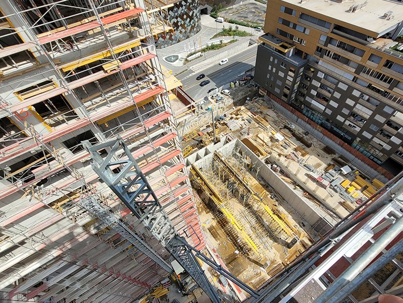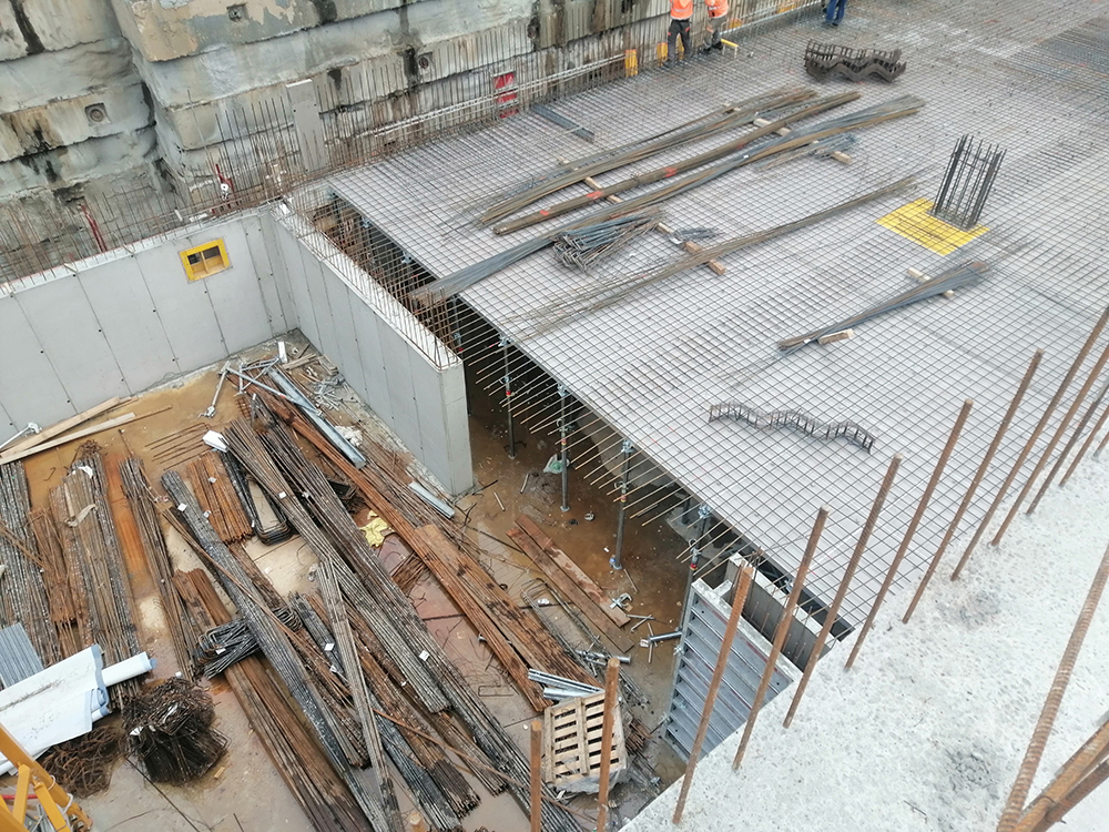 Für das über zwei Jahre Bauzeit angelegte Bauprojekt benötigte man ein Wandschalungssystem, das einerseits einen schnellen Baufortschritt gewährleistet, andererseits aber auch höchsten Ansprüche an die Robustheit erfüllte. Zum Einsatz kommt in den Regelbereichen die RINGER Stahl Master mit Elementgrößen bis zu 330x240cm. In mit dem Kran nicht erreichbaren Einsatzbereichen wird mit der leichten Stahlschalung ST2000 gearbeitet. Dieses System kombiniert Robustheit und Transportierbarkeit per Hand in optimaler Weise.