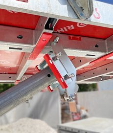 > Verschiedene Abschnitte dieses umfangreichen Projekts zeichnen sich durch ihre beeindruckenden Ausmaße aus. Insbesondere eine aussteifende Wand, erforderlich zur Abtragung einer sehr großen Last in diesem Bereich, erreichte beeindruckende Dimensionen von 12m Länge, 6m Höhe und einer Stärke von 85cm. Das RINGER Doppelgeländer-Gerüst diente dabei sowohl als Bewehrungsgerüst als auch als Arbeitsgerüst für die Betonierarbeiten.