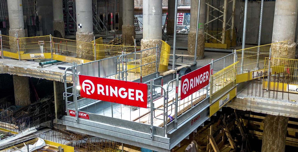 RINGER Ausfahrbühne für effizienten Materialumschlag im Tiefgeschoss