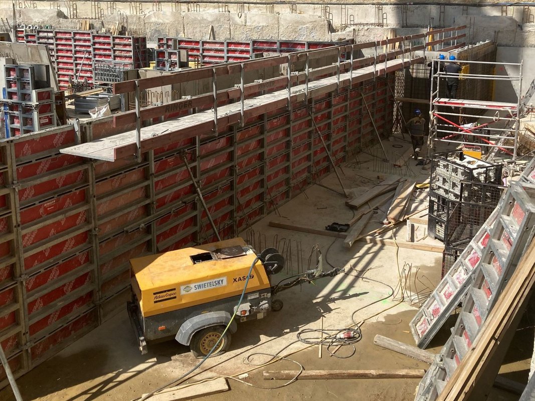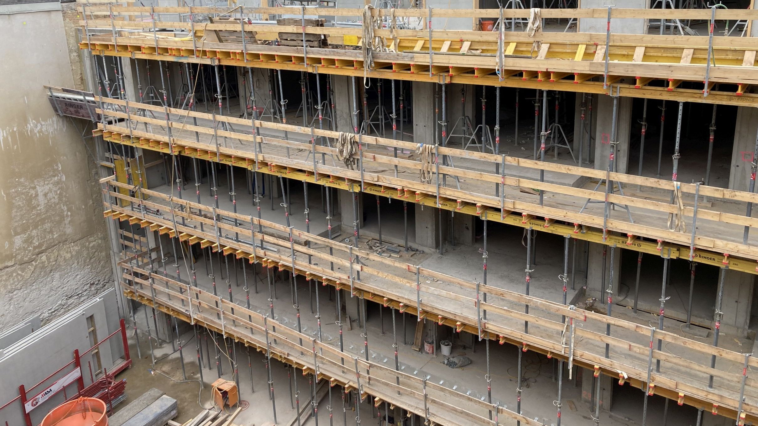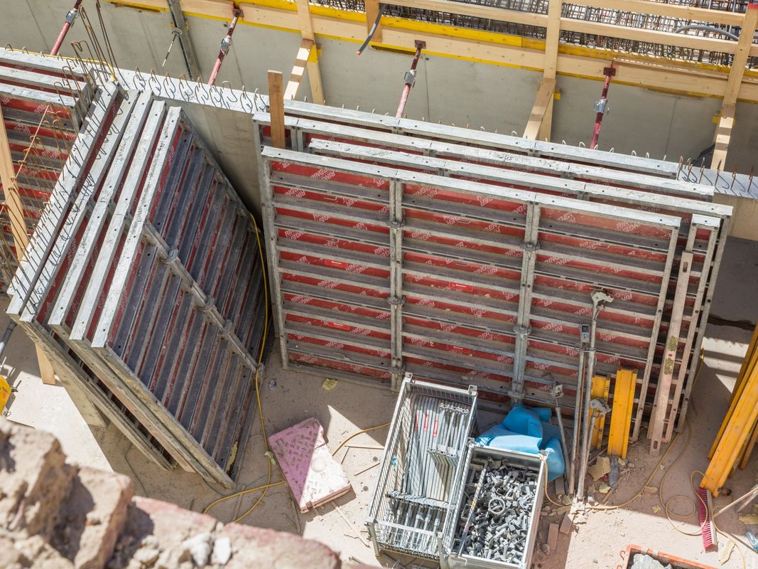 Zum Einsatz kam RINGER-Material im Wert von €650.000. Die Wände wurden mit Stahl- und Alu-Master Elementen hergestellt, die Decken mit dem RINGER Flex-System geschalt. Von Betonierbühnen, 3S-Bühnen, Absturzsicherungen, Deckenstützen bis hin zu einem Modul-Treppenturm für einen sicheren Aufstieg war eine umfangreiche Materialpallette vor Ort im Einsatz. Bauleiter Wolfgang Kovacs zeigt sich hochzufrieden mit der Robustheit und Leistungsfähigkeit des RINGER-Materials. Sogar eine 30 Jahre alte Alu leicht-Schalung war noch im Einsatz.