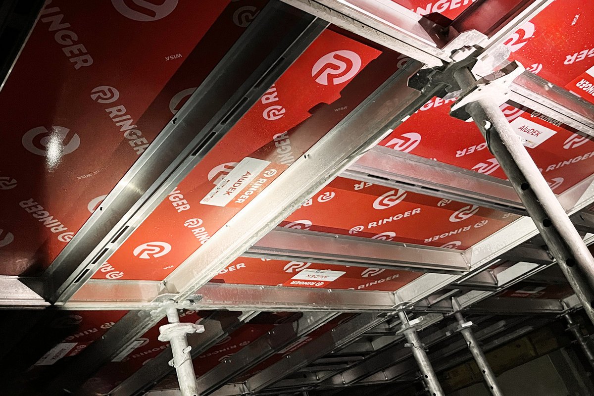 Im Treppenhaus des neuen Bürogebäudes wurde die RINGER FLEX Trägerdeckenschalung eingesetzt, die aufgrund ihrer hohen Flexibilität und einfachen Handhabung in diesem Bereich die perfekte Lösung darstellte. Die anpassungsfähigen Schalungselemente ermöglichten eine zügige Fertigstellung auch in komplexen Bereichen.
