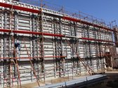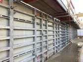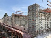Zentrale Rollen spielen beim Neubau Schalungs- und Gerüstsysteme von RINGER. Die Schalung der Wände erfolgt mit der neuen, einseitig bedienbaren Wandschalung Master PRO. Mit Elementgrößen von bis zu 300x240cm konnten auch großen Flächen schnell geschalt werden. Durch den reduzierten Zeitaufwand beim einseitigen Ankern sowie der großen Schalungsfläche pro Anker konnten die Arbeitskosten deutlich reduziert werden.