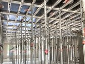 Beim Schalen der Decken kam die extraleichte Deckenschalung AluDEK zum Einsatz. Das System besteht aus nur drei zentralen Bauteilen, dem Deckenschalungselement, dem RINGER AluDEK Kopf sowie Standard-Deckenstützen. Das aus stabilen Aluminiumprofilen bestehende Schalelement mit den Abmessungen 1,35 x 1,35m (1,82m²) sorgte für ein schnelles Schalen im Regelbereich. Das geringe Gewicht der Elemente von nur 16kg/m² entlastete zusätzlich die Arbeiter auf der Baustelle.