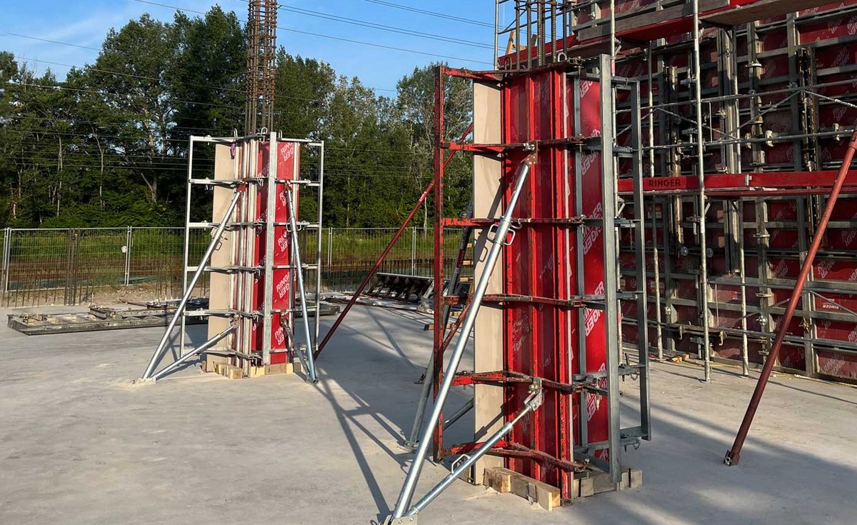 Diese Stützen wurden mit dem RINGER PAX-System geschalt. Dabei handelt es sich um eine komplett fertige Schalung, die ohne vorherige Montage sofort einsatzbereit ist.