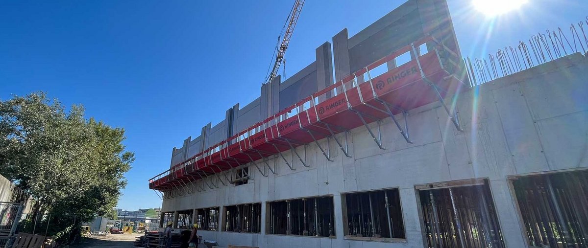 Bei der Errichtung des Gebäudekomplexes setzte die STEINER BAU GmbH auf Schalung und Zubehör aus dem RINGER Mietpark. Die RINGER Miete von Schalungselementen und Gerüstlösungen bietet wesentliche Vorteile: