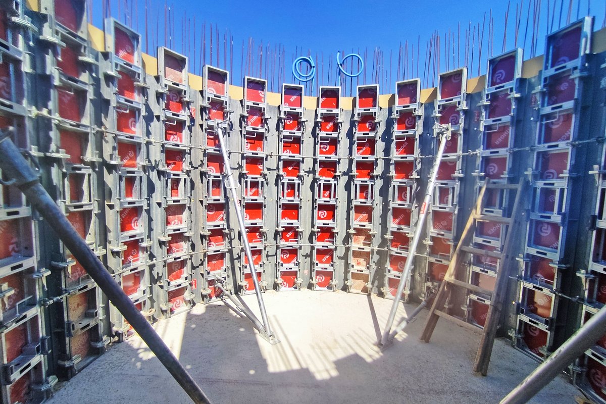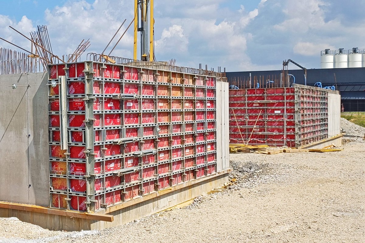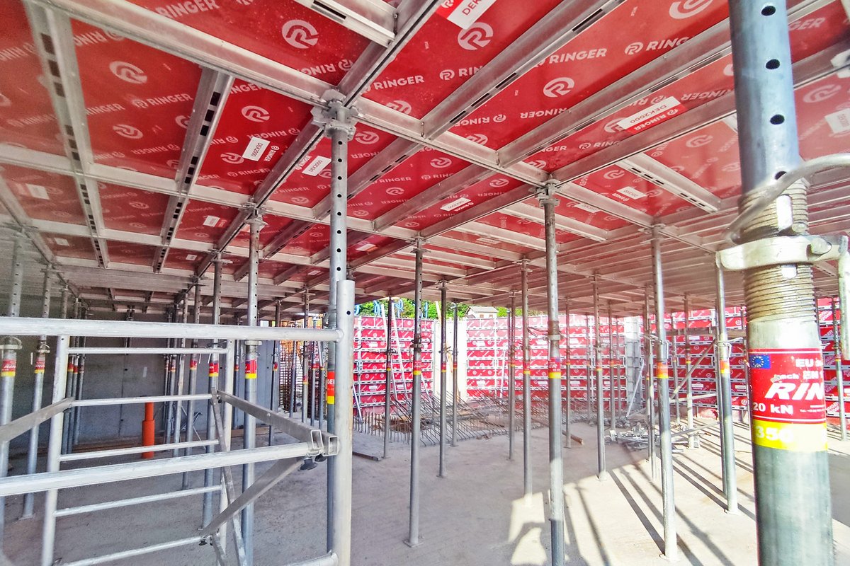 > Auch die leichte Stahlrahmenschalung ST2000 realisiert ausgestattet mit hochwertigen RINGER Schalhäuten höchste Betonanforderungen.