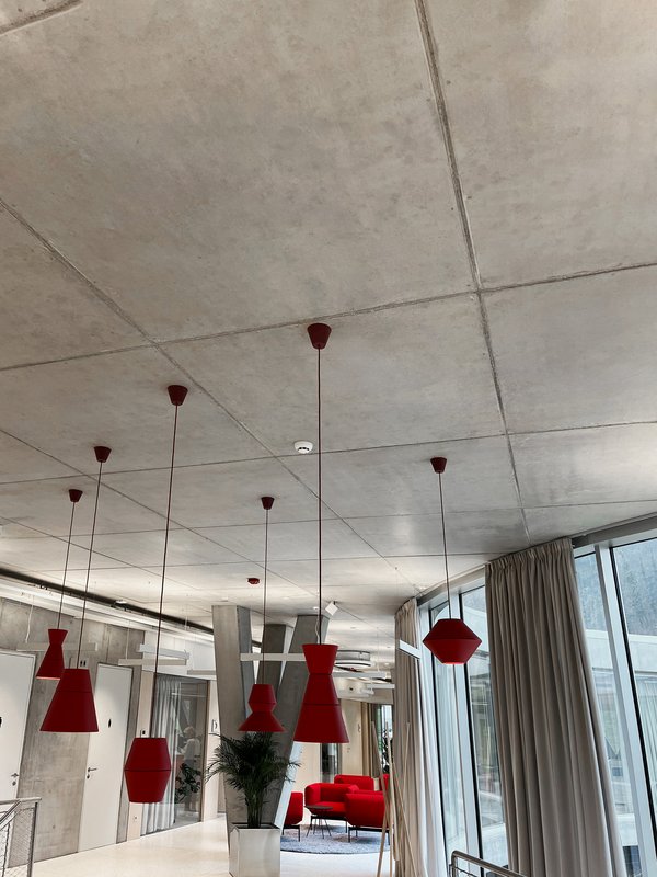 > Bei derAluDEKModuldeckenschalung schafft der quadratische Grundriss der Schalungselemente ein klares Fugenbild an der Decke.