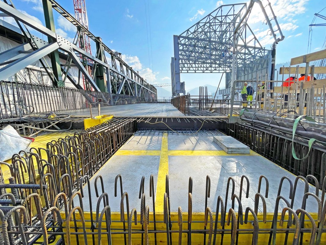 Neben den strengen Sicherheitsvorschriften und der Aufrechterhaltung des Werksbetriebs während der gesamten Bauzeit stellten vor allem die Dimensionen der massiven Stahlbetonstrukturen sowie die begrenzten Platzverhältnisse hohe Ansprüche an Planung und Ausführung. Da das Bauwerk in unmittelbarer Nähe zu bestehenden Anlagen der voestalpine errichtet wird, war eine präzise Abstimmung der Bauarbeiten unerlässlich. Besonders herausfordernd war die Koordination mit dem innerbetrieblichen Transport flüssigen Stahls, der mit einem Gesamtgewicht von je 1.000 Tonnen absoluten Vorrang hatte und jederzeit ungehindert erfolgen musste.