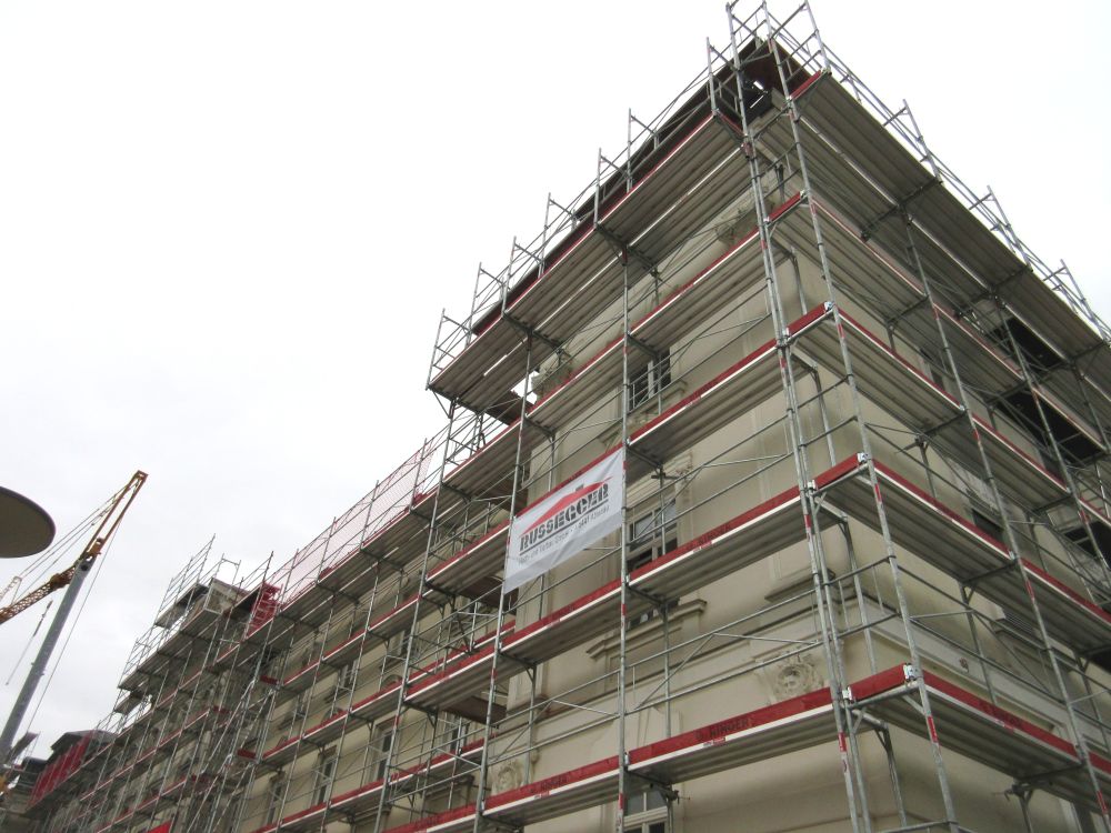 Im Laufe des Winters 2021 werden bis zu 7.000m² Doppelgeländergerüst von RINGER im Einsatz sein. Die vollverzinkten Stahlrahmen sind mit nur wenigen Handgriffen aufgebaut und mit Belagsblatten belegt. Für den sicheren Etagenwechsel wurden RINGER Aufstiege mit Klappe und Leiter eingesetzt. Der Hauptaufstieg wurde als normgerechter Treppenturm ausgeführt. Baumeister Russegger und Polier Posch Manfred sind begeistert. Für mehrgeschossigen Gerüstbauten sind die leichten Alu-Belagsplatten von RINGER optimal im Handling. Ob Sanierung, Neubau oder Spezialprojekte – bei uns können Sie passende Gerüste und Schalungen kaufen.