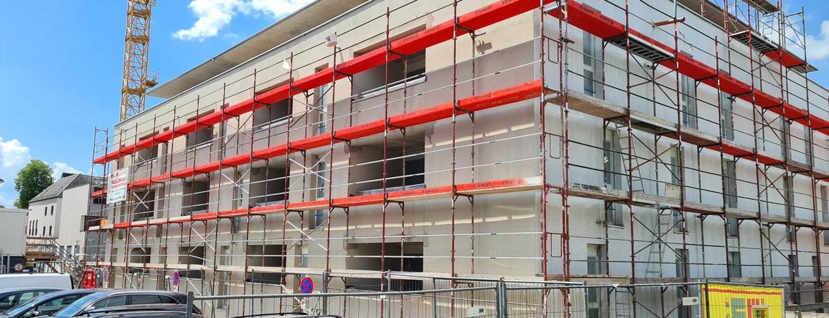 Für die anschließenden Fassadenarbeiten wurde das Schnellbau-Gerüst von Ringer installiert.