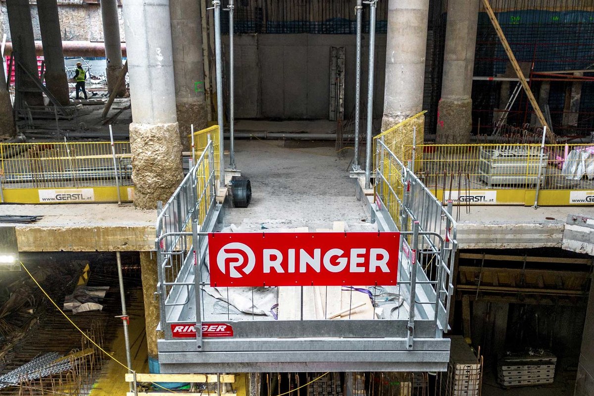 Die RINGER Entladebühne ist eine temporäre Konstruktion, mit deren Hilfe Lasten in jeder Etage sicher außerhalb des Gebäudes gelagert werden können.