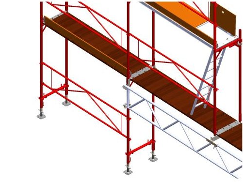 Pro překlenutí otvorů v konstrukci lešení.