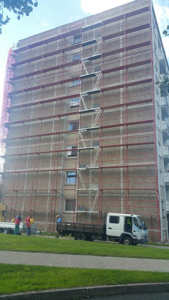 Při rekonstrukci a zateplení fasády bytového domu v Chebu bylo použito lešení od Ringer.cz, které poskytlo spolehlivé a bezpečné řešení pro tento rozsáhlý projekt. Stabilní konstrukce lešení umožnila efektivní a precizní provedení prací, přičemž splnila veškeré bezpečnostní i technické požadavky.
