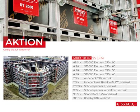Sie suchen hochwertige Schalungen zu attraktiven Konditionen? Bei RINGER bieten wir Ihnen hochwertige Schalungssysteme, die perfekt auf Ihre Anforderungen zugeschnitten sind. Mit unseren aktuellen Aktionen für Schalungen sparen Sie nicht nur Geld, sondern erhalten auch langlebige und zuverlässige Produkte für jedes Bauvorhaben.