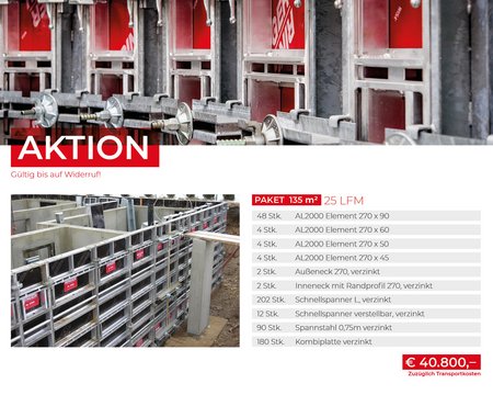 Unser aktuelles Kaufangebot für 216m² leichte Alu-Kellerschalung.