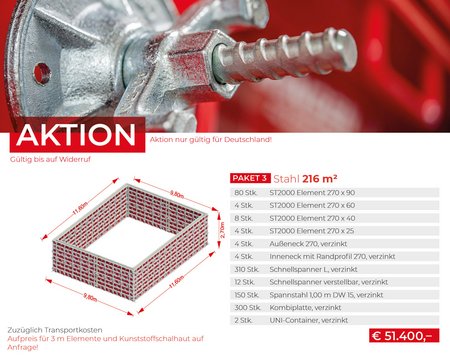 Unser aktuelles Kaufangebot für 216m² leichte Stahl-Kellerschalung.