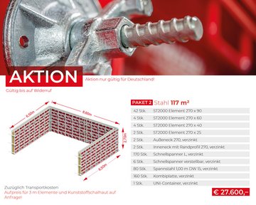 Unser aktuelles Kaufangebot für 117m² leichte Stahl-Kellerschalung.