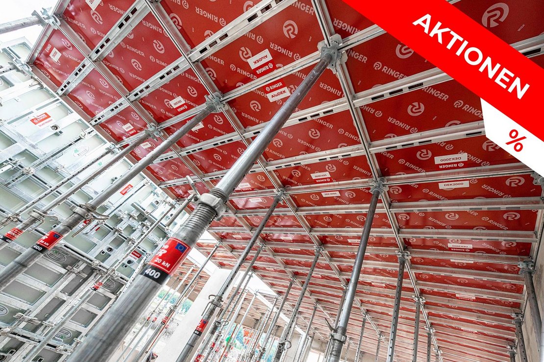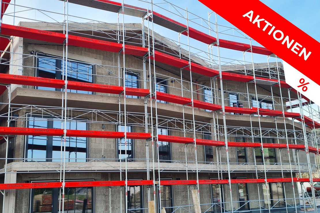 Attraktive Angebote für Schalungen und Gerüste Profitieren Sie jetzt von den aktuellen Aktionen für RINGER Schalungen und Gerüste! RINGER bietet Ihnen Gerüste von höchster Qualität zu einem unschlagbaren Preis-Leistungs-Verhältnis. Ob Fassadengerüst, Modulgerüst, Arbeitsgerüst oder Schutzgerüst – bei uns finden Sie das passende Gerüst für Ihr Bauprojekt. Unsere Wandschalungen und Deckenschalungen bieten zudem höchste Qualitätsstandards und sorgen für präzise Lösungen, die sowohl für kleine Bauvorhaben als auch für große, anspruchsvolle Projekte geeignet sind. In unserem umfangreichen Sortiment finden Sie auch zahlreiches Zubehör wie Deckenstützen, Richtstützen, Schalungsplatten, Schnellspanner, Kombiplatten, Stützböcke, Spannstahl, Richtschienen, Belagsplatten, Gerüsttreppen und Gerüstschutznetze sowie Komponenten für eine sichere und effiziente Arbeitsumgebung. Lassen Sie sich von uns beraten und finden Sie das ideale RINGER Gerüst oder die perfekte Schalung für Ihr Bauvorhaben.