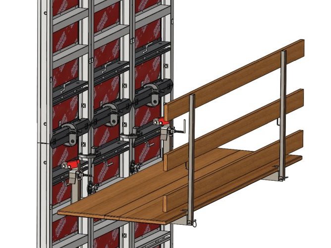 Die RINGER Betonierbühne L kommt als montagefertige Einheit und ist ganz einfach mittels Kran an der Schalung einzuhängen.