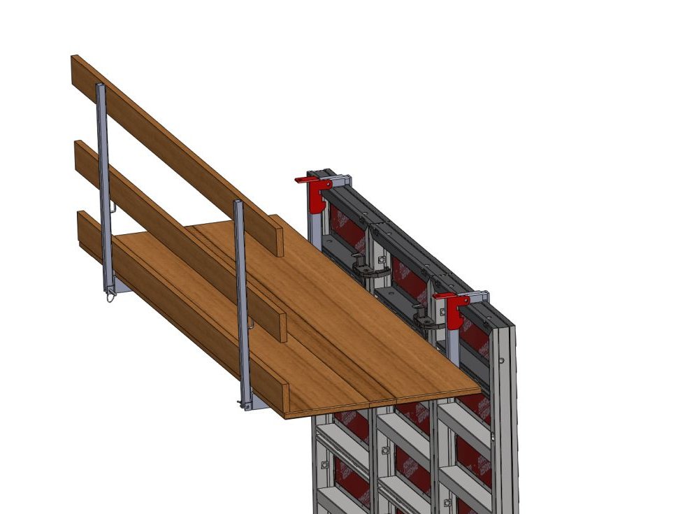 Die selbsttätige Aushubsicherung sowie die verleimten und imprägnierten Holzbeläge garantieren höchste Sicherheit am Bau.