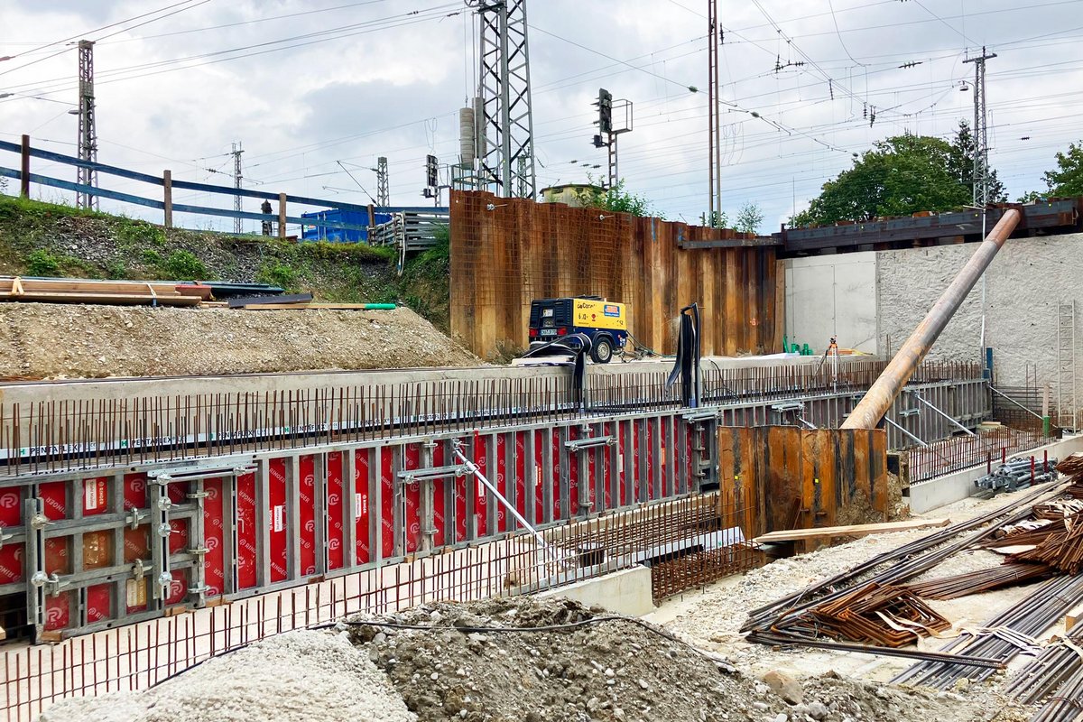 Für das Projekt wurden RINGER-Produkte wie die Stahl Master Schalung sowie die Flex Trägerdeckenschalung genutzt. Mit den flexiblen und effizienten Lösungen von RINGER verläuft das Projekt im vorgesehenen Zeitrahmen für eine fristgerechte Umsetzung der Autoreisezuganlage.