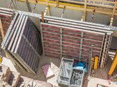 Zum Einsatz kam RINGER-Material im Wert von €650.000. Die Wände wurden mit Stahl- und Alu-Master Elementen hergestellt, die Decken mit dem RINGER Flex-System geschalt. Von Betonierbühnen, 3S-Bühnen, Absturzsicherungen, Deckenstützen bis hin zu einem Modul-Treppenturm für einen sicheren Aufstieg war eine umfangreiche Materialpallette vor Ort im Einsatz. Bauleiter Wolfgang Kovacs zeigt sich hochzufrieden mit der Robustheit und Leistungsfähigkeit des RINGER-Materials. Sogar eine 30 Jahre alte Alu leicht-Schalung war im Einsatz.