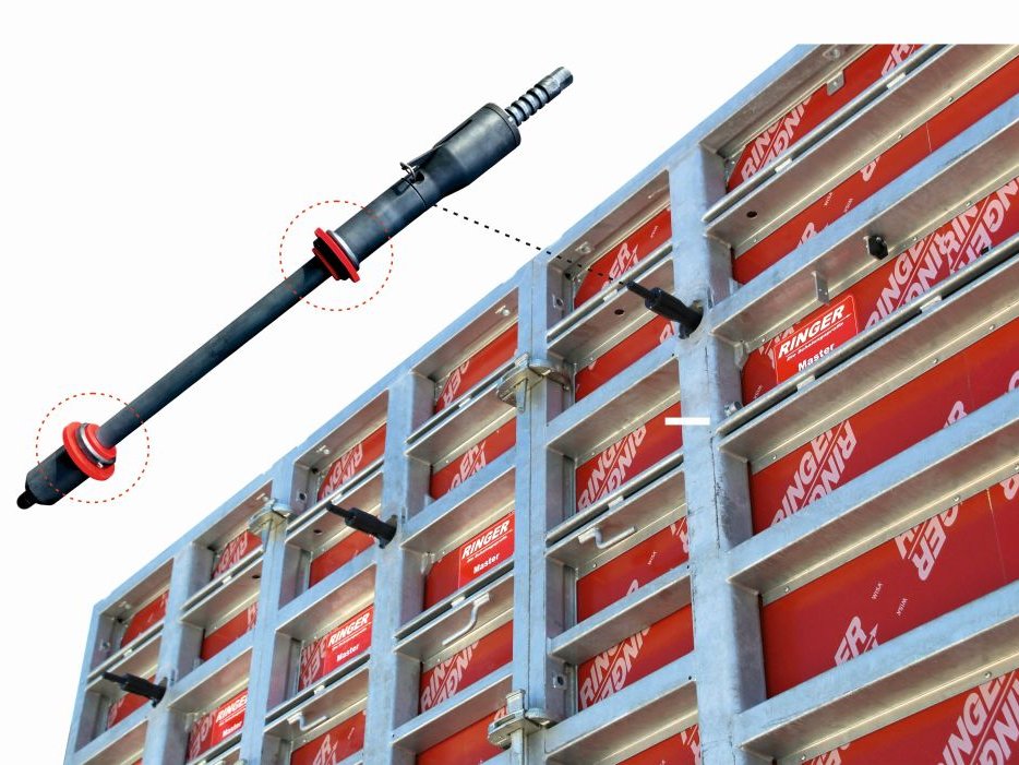 3 m of formwork height demand only two rows of ties. Adjustment of wall thickness is just a flick of the wrist.