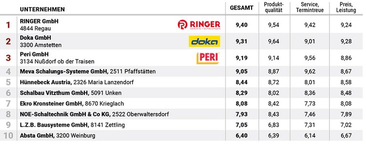 RINGER best formwork supplier in Austria for the 7th time in a row