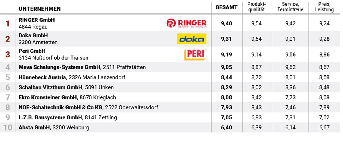 RINGER best formwork supplier in Austria for the 7th time in a row