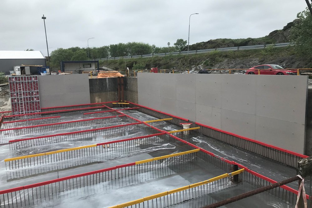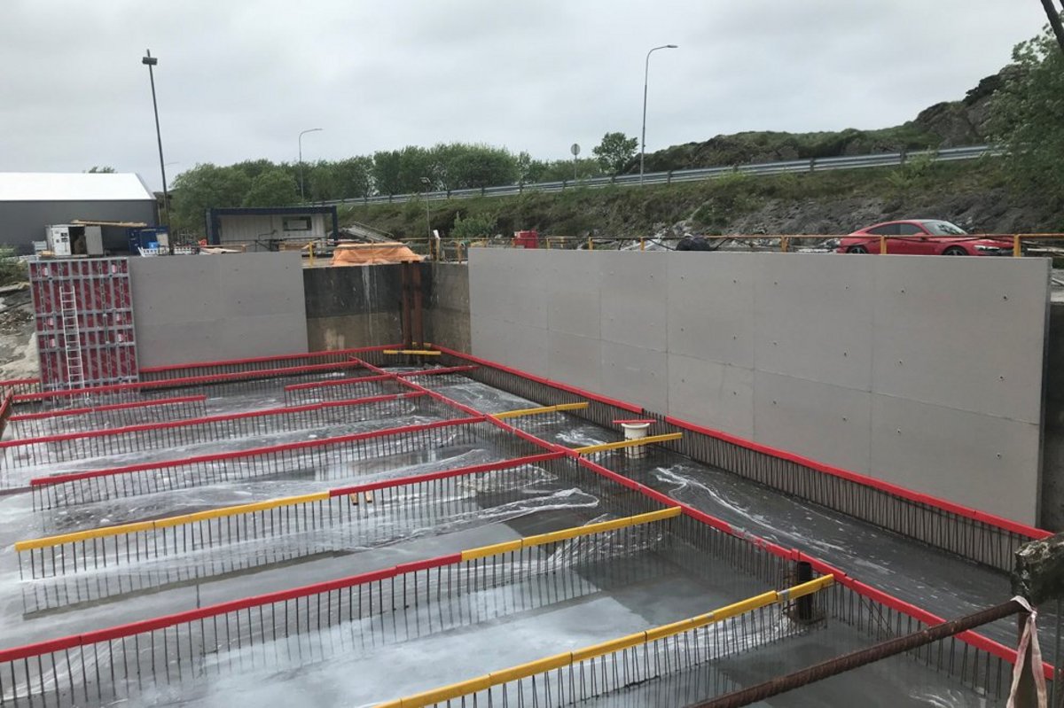 Formwork solutions from Austria were required as part of the implementation of a newly developed solution for the production of high-quality fish. The floating concrete barges are being built along the west coast of Norway on behalf of the company Dokk Husøy. Each of the 40x20 meter facilities offers 600 tons of feed capacity, divided into eight silos and a central multiple feeding system. Numerous plants will be built over a period of 5 years.