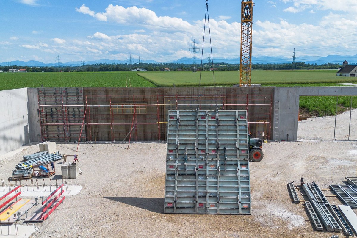 A versatile new agricultural building was recently constructed in Lambach, Upper Austria. A modern machine hall, a workshop and a grain store were built on an area of 1,545 m², with sufficient space for the agricultural business. The construction company Bögl Bau GmbH was commissioned to erect the concrete walls with external dimensions of 51.5 x 30 meters.