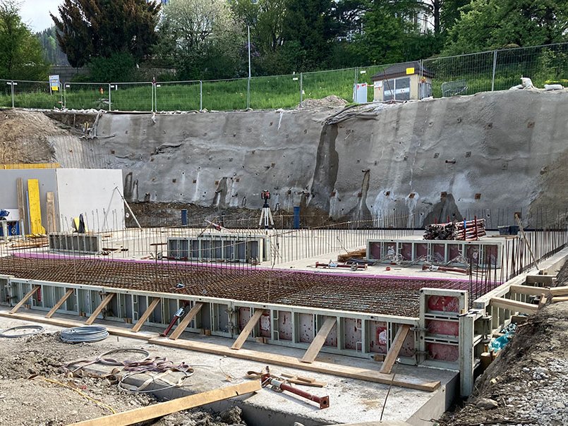 The construction of the new parking garage of the Wellnesshotel Dilly in Windischgarsten is progressing rapidly. On a built-up area of 1,300m², comfortable parking spaces for future guests are being created on three levels. The company Schopper Bau GmbH from Kremsmünster, which relies on the formwork competence of RINGER, was commissioned with the structural work.