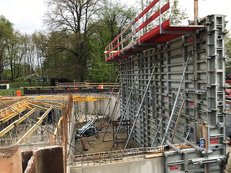 RINGER formwork systems in particular play a central role in the new construction of the office complex. The walls are formed using the innovative, single-sided Master PRO wall formwork. With panel sizes of up to 300x240cm, even large areas could be quickly formed. Due to the single-sided anchoring as well as the large formwork area per anchor, labor costs were significantly reduced. The company Donhauser decided in favor of the RINGER Master PRO System, especially because of the large panels as well as the single-sided anchoring.