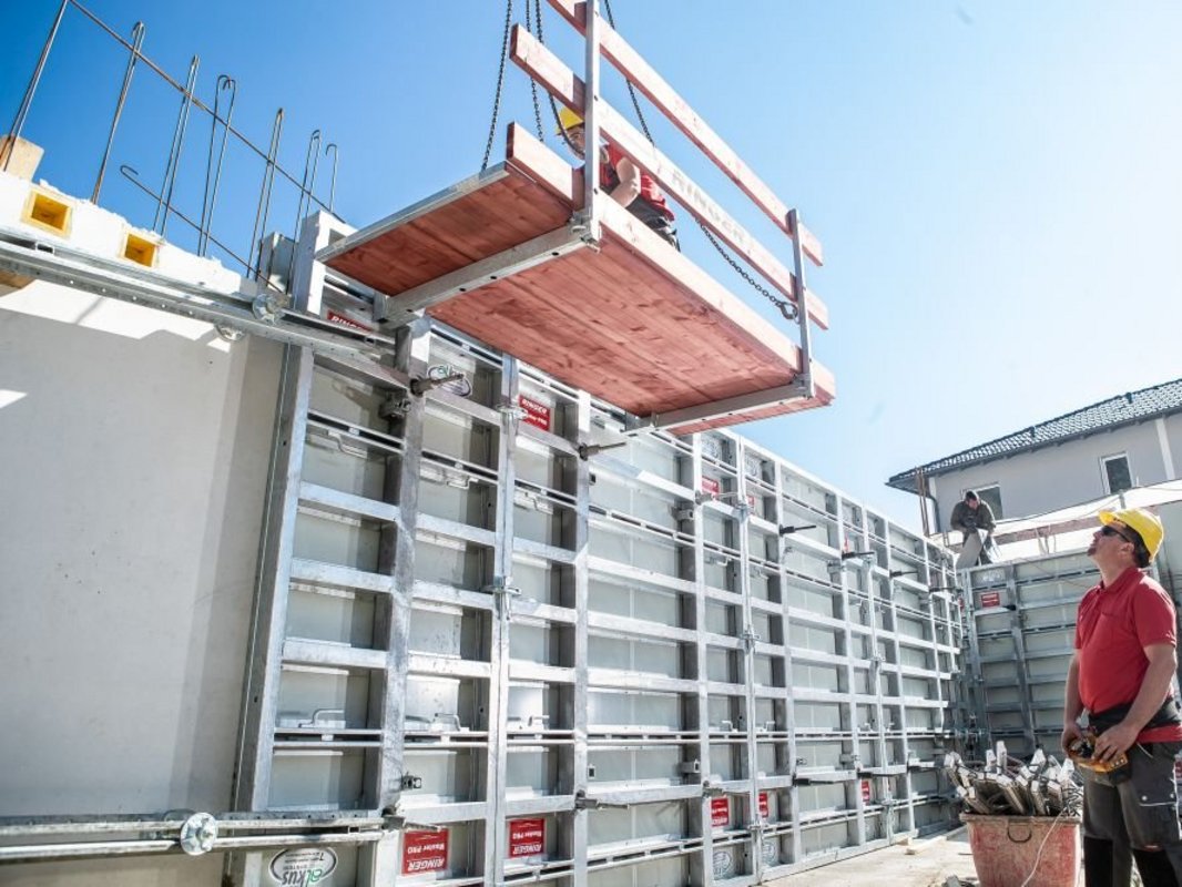 Platforma za betoniranje L Ringer dolazi u obliku unaprijed sastavljene jedinice i lako se može pričvrstiti na oplatu dizalicom.