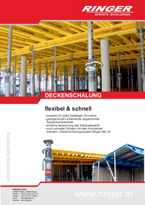 Inovativni dizajn ploče za betoniranje Ringer ubrzava oplaćivanje velikih stropnih površina. Promjene statičkih i geometrijskih zahtjeva ne predstavljaju prepreku. Unaprijed sastavljene jedinice dostavljaju se na gradilišta za trenutnu uporabu. Jednostavno rukovanje vilicama dizalice ili pomičnim kolicima pojednostavljuje uporabu na vašem gradilištu.