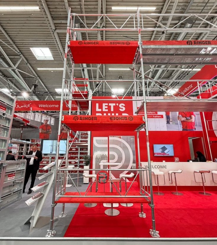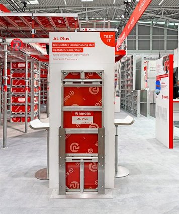 U području oplata RINGER je predstavio praktična unapređenja: sustav stropne oplate AluDEK u kombinaciji s DEKplus stolovima ponovno je pokazao svoju brzinu i prilagodljivost – izravno na sajmu.