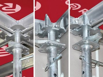 Sistem se sastoji od samo tri glavne komponente: stropni podupirači, glava i element.