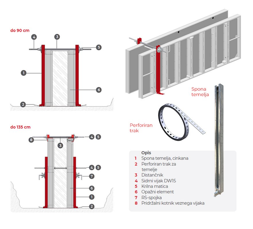 - z uporabo perforiranega traku in spon temeljev v betonu temelja ne ostanejo luknje od vezave opaža