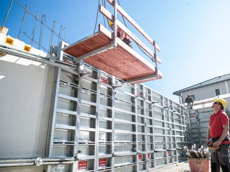 L oder za betoniranje je predhodno sestavljena enota in jo je mogoče z žerjavom enostavno obesiti na opaž.