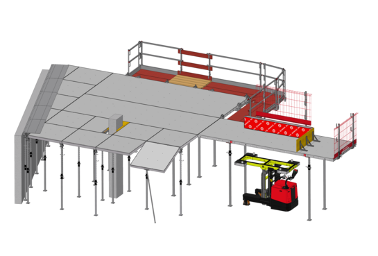 Modularni stropni opaž iz lahkih aluminijastih panelov za hitro opaženje večjih površin.