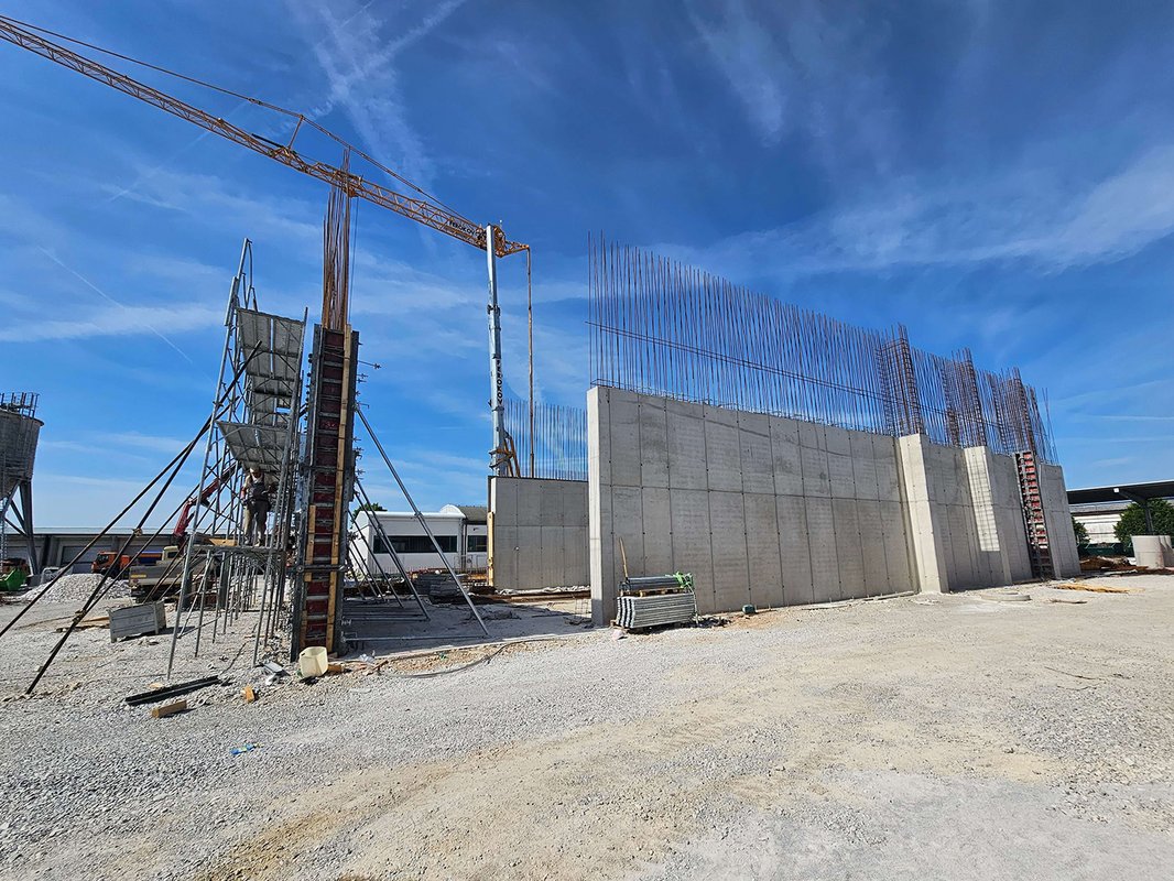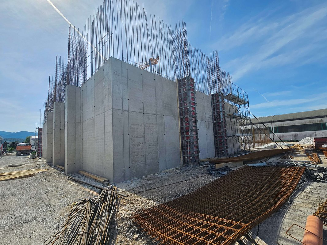 Naš partner podjetje CBE d.o.o. v Postojni za DARS gradi skladišče posipnih materialov. Skladišče bo omogočalo skladiščenje soli in vzporedno neposredno nakladanje soli na posipalce, kar bo zmanjšalo časovne zamude pri manipulaciji s soljo.