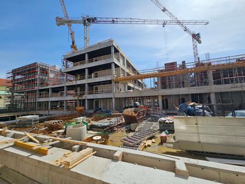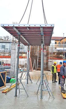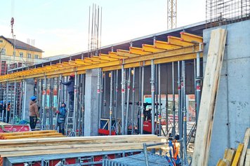 Naš partner podjetje Makro 5 Gradnje za Medicinsko faktulteto v Ljubljani gradi kampus Vrazov trg. Pri opaženju uporabljajo časovno in stroškovno učinkovite DEKplus opažne mize ter kompatibilni modularni stropni opaž AluDEK, stenski opaž ST2000 ter stropni opaž Flex. V trenutni fazi gradnje so postavljeni fasadni odri Ringer DG ob celotnem objektu.