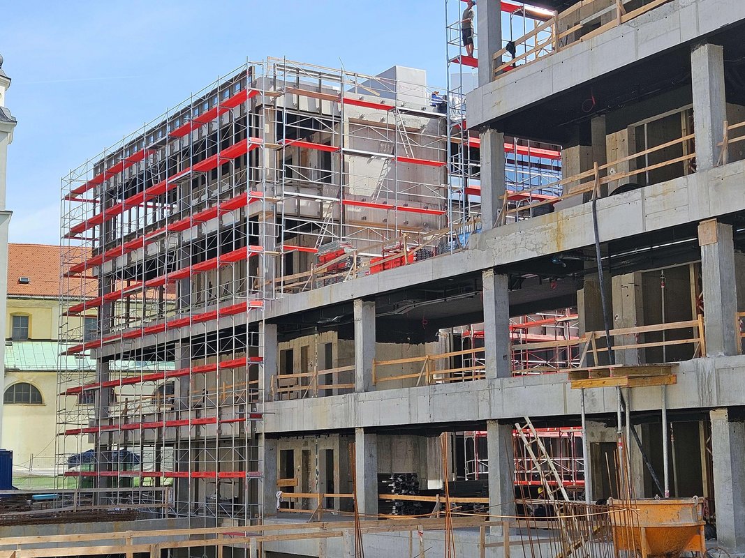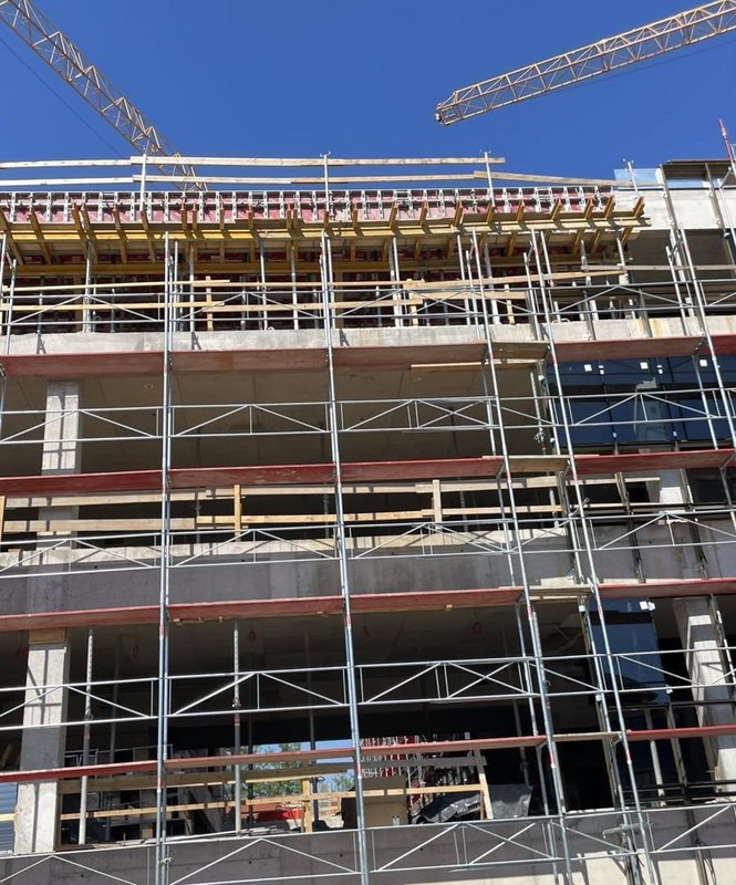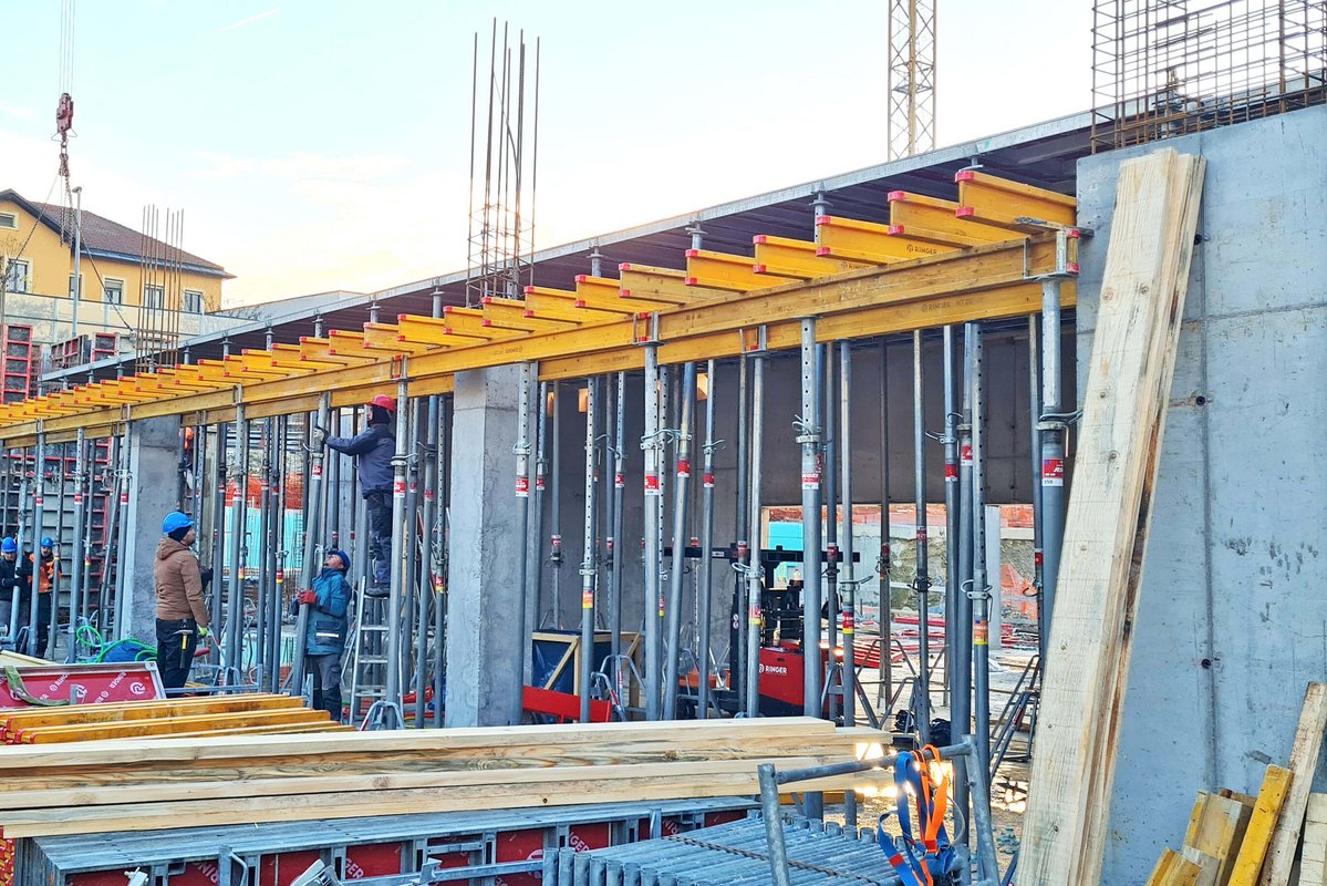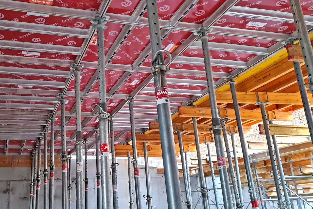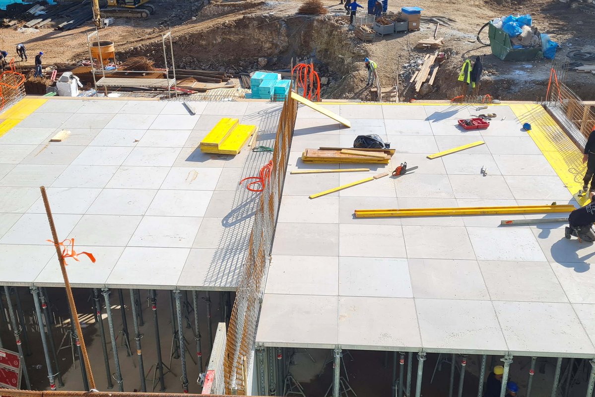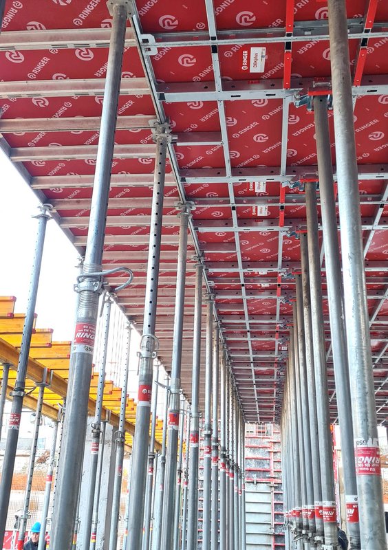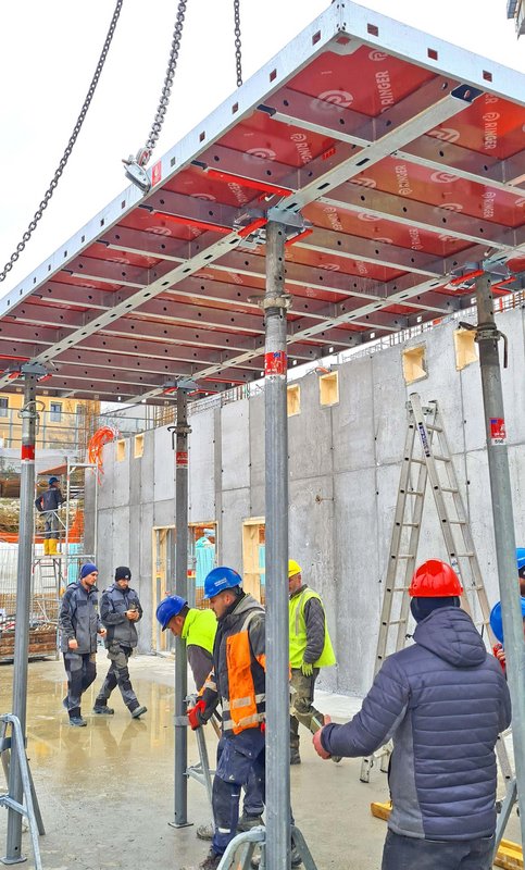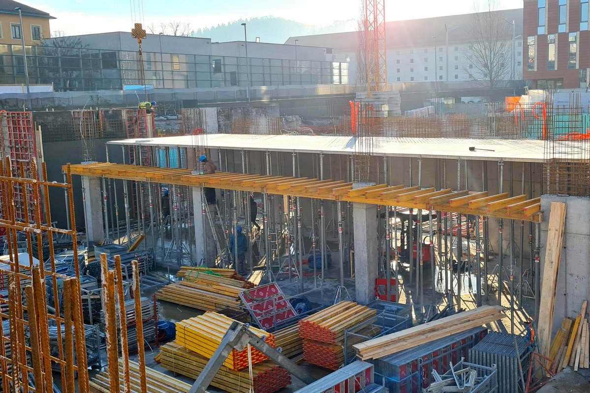 Naš partner podjetje Makro 5 Gradnje za Medicinsko faktulteto v Ljubljani gradi kampus Vrazov trg. Pri opaženju uporabljajo časovno in stroškovno učinkovite DEKplus opažne mize ter kompatibilni modularni stropni opaž AluDEK, stenski opaž ST2000 ter stropni opaž Flex. V trenutni fazi gradnje so postavljeni fasadni odri Ringer DG ob celotnem objektu.