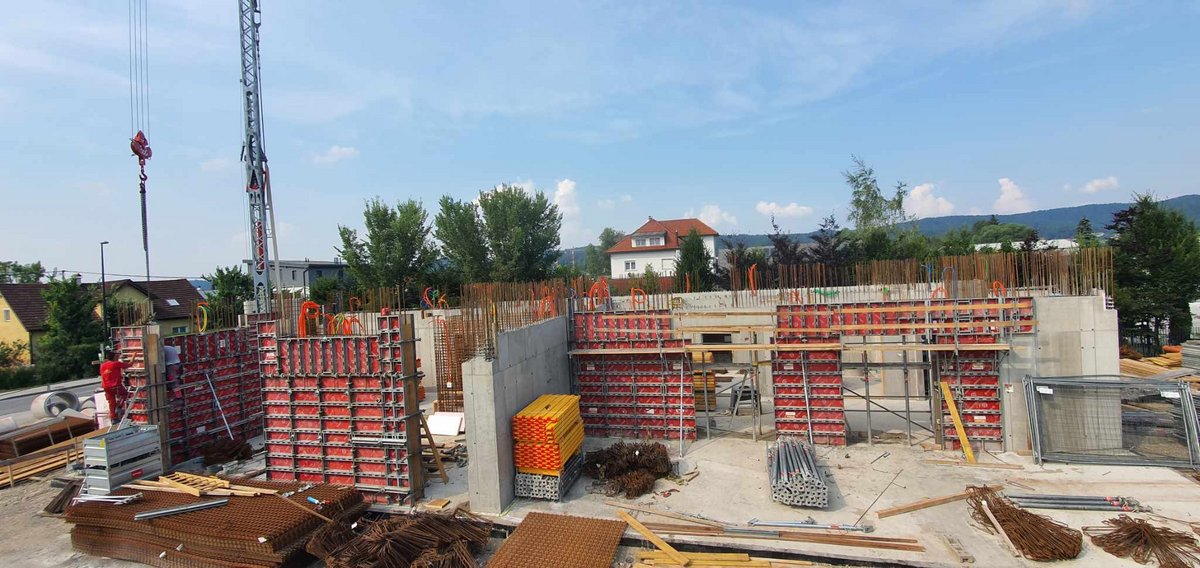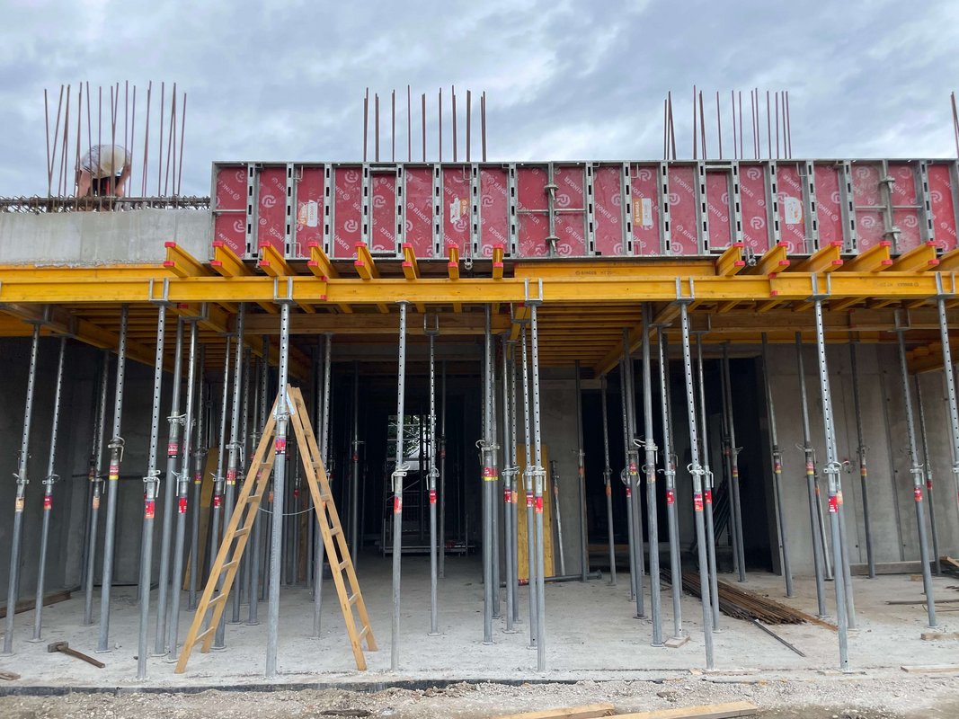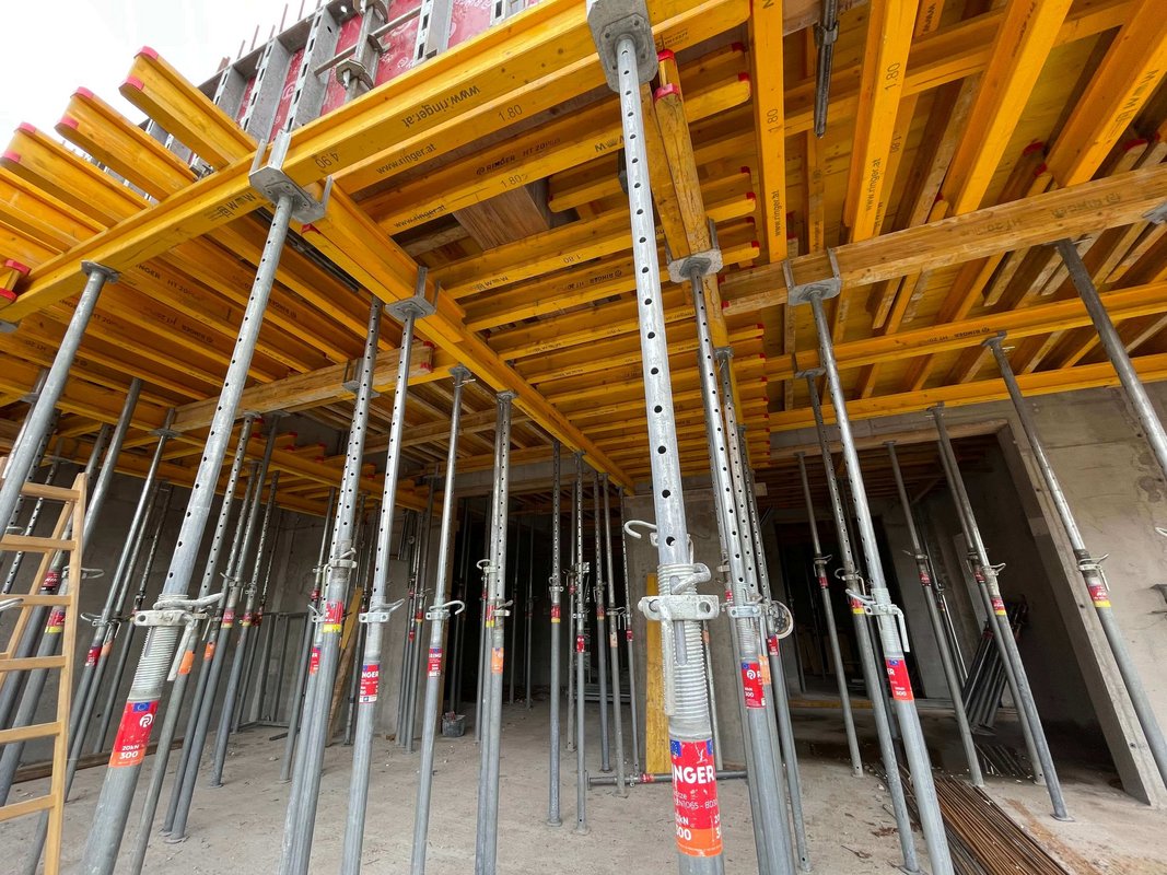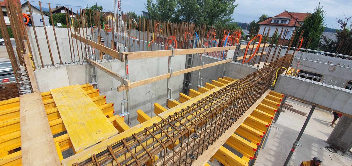 Pri gradnji uporabljajo opažne sisteme Ringer - stropni opaž Flex in stenski opaž ST2000.