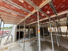 Izvedba projekta oz. sama gradnja poteka tekoče tudi zaradi našega podjetja, saj smo izrisali opažno tehnologijo in izvedbene načrte, kjer smo uporabili stenski opaž Steel Master ter stropna opaža AluDEK in Flex. Poleg tega je pri gradnji uporabljena tudi konzolna plezajoča ploščad Ringer.