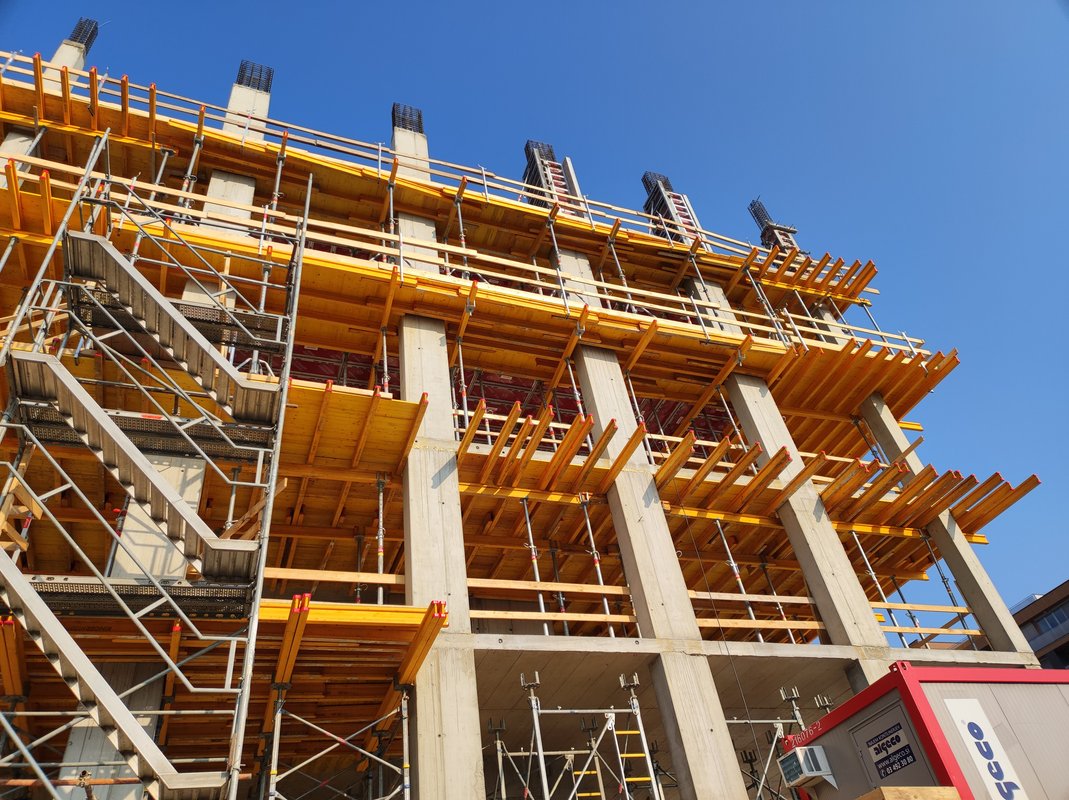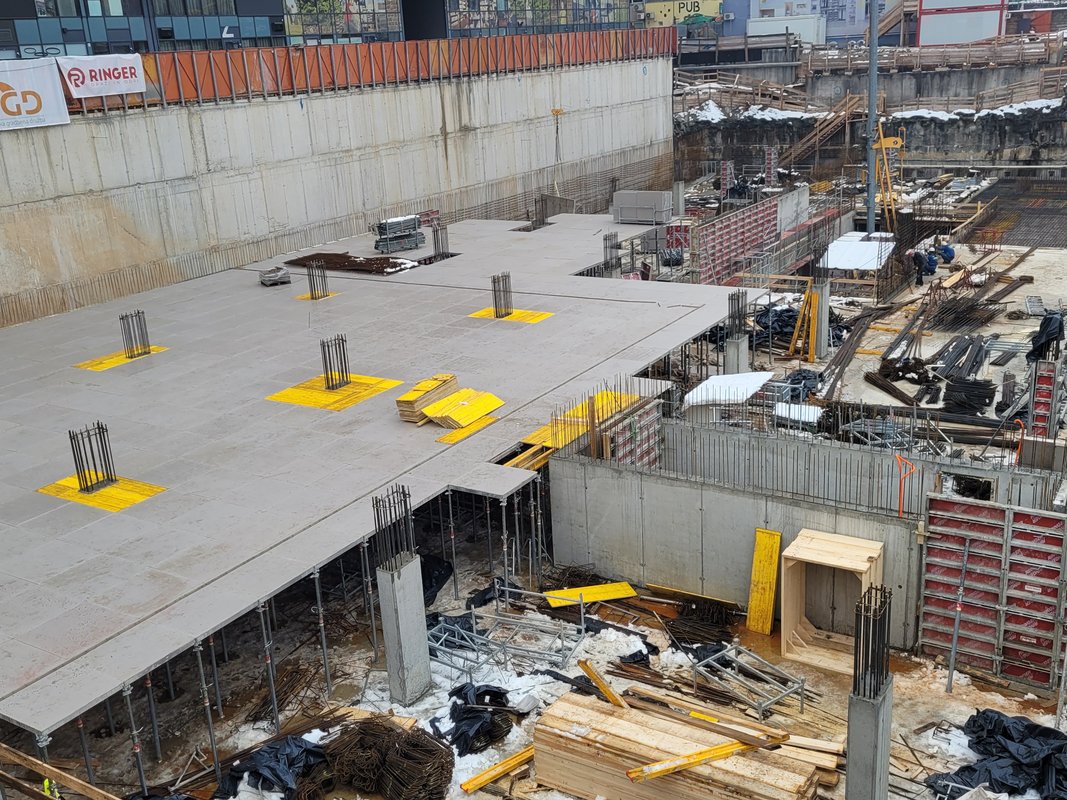 Gradbeno podjetje se je oprlo na rešitve stenskih in stropnih opažev podjetja Ringer opaži in odri. Uporabljeni so bili priljubljen opažni sistem Master, enostranski opaž, AluDEK, 3S konzolni odri, opažne mize in Flex stropni opaž.